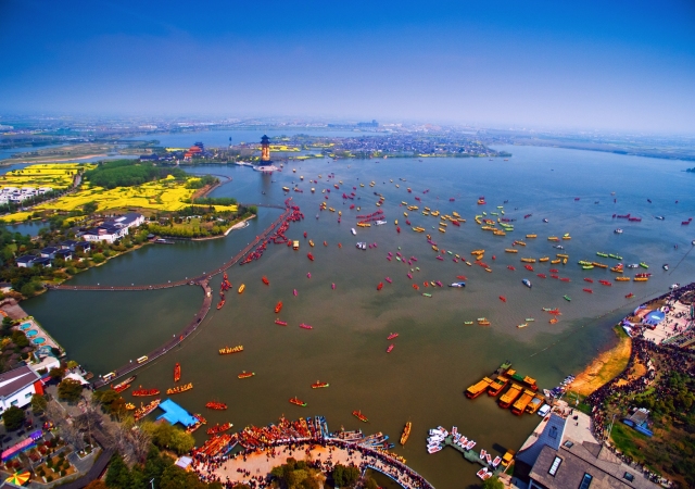 “从过去的民间组织到政府主导再到社会参与,会船也随着时空的穿越,变成了全社会共同参与的盛会。溱潼会船己演变成一种水乡儿女奋进新征程、建功新时代的美丽画卷。”曾任姜堰区溱潼镇党委书记的肖乐平深有体会地说。 从过去会船的“窄”变成了水上文化的“宽”,姜堰人把船会越办越震撼。时间跨度从原先的几天会船变成了一个多月,天天有会船,场场有精彩;从过去的单项会船变成了“视觉文化盛宴”,各种文艺活动精彩纷呈,水上各种极限运动应有尽有,岸边文娱活动,让游客大呼过瘾;从过去的几千人变成了十多万人,整个溱湖变成了欢乐的海洋。 今年中国泰州姜堰溱潼会船节更值得期盼,除了规定动作外,你还可共品到壮怀激烈的“满姜红”,畅游最有家国情怀的姜堰:共赏到水波荡漾的“满姜红”,畅游最有诗意的姜堰;共享到千年文脉的“满姜红”,畅游最有文艺范的姜堰;共赴生活红火的“满姜红”,畅游最有烟火气的姜堰。与历史重逢,与文化对话,更有数不尽的盲盒,享不尽的惊喜。 “会船会水”全业融合,水上狂欢 激活会船非遗活态传承的生命力,让会船结出有滋有味的幸福生活新果实。近年来,姜堰区在传统民俗和现代生活中找到了连接点和共鸣处,将保护传承与合理开发相结合。 今年会船节,姜堰区精心策划4大类、18项系列活动,让游客大饱眼福。打造全域旅游新亮点,展示镇村有惊喜的全景画卷,会船节期间,“堰上花开”乡村旅游节重启,古镇溱潼寻觅古韵乡愁、千垎周庄品味田园诗画、潼享田园尽享天伦之乐,让游客邂逅“十里不同风、百里不同俗”的水乡风情,以会船拉动旅游产业。 打造全业融合新境界。会船节期间,文化、赛事、经贸为一体的饕餮盛宴如约而至,赏析高二适书法,感悟“当代草圣”挥毫泼墨的酣畅淋漓;溱湖半程马拉松,体验速度与汗水的对决;群众文化艺术节,感受传统艺术的无穷魅力;听船娘悠扬清脆的摇橹小调;看“生态环境全球500佳”河横村;赏十里滨水长廊;栖身小杨人家网红民宿;游院士故居;探访单塘河新石器遗址;追寻西周江淮第一城的辉煌岁月;打卡溱潼砖瓦博物馆;对话文人大师;游觅苏中第一个红色苏维埃政权诞生地;经贸洽谈会,在溱湖等你,真正实现会船搭台,经贸唱戏。