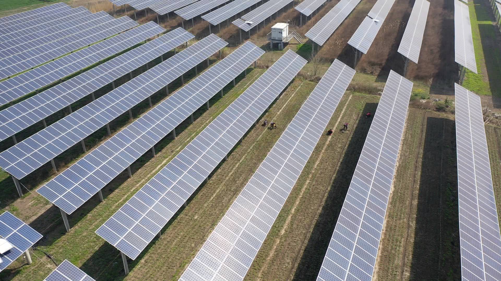 光伏发电和农业种植的碰撞,会产生什么样的“火花”呢?在泰州市海陵区罡杨镇纯垛村,光伏产业的发展让村民手中多了一张“阳光存折”,种植户陆志祥利用光伏板下土地资源,种植了200亩韭菜,形成“一地两用”的光伏农业循环模式,带动整体产值提升及农民增收,为推动乡村振兴蓄势赋能。