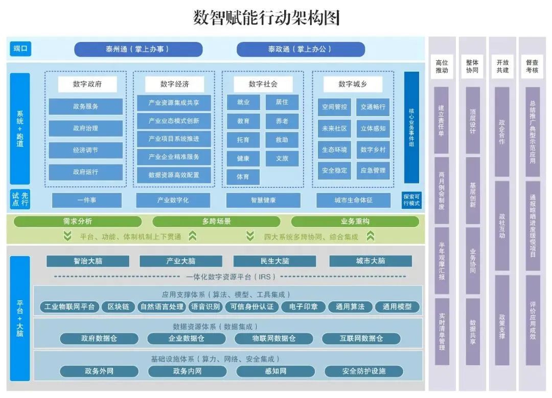 泰州市的数智赋能行动将围绕底座、应用、门户三个层面建立“142”工作体系。“1”,即打造一个数字底座,泰州已梳理196个部门、826个应用,建成全省首个数字资源超市和公共数据平台,实现全市云资源、网络资源和组件资源的共建共享共用。“4”,即推进数字政府、数字经济、数字社会、数字城乡四个领域应用,市相关部门将从群众和企业需求出发,通过对部门业务的V字模型拆解,以小切口方式推出一系列数字化应用场景,用数字化改革成果,实现最大程度惠企利民。“2”,即围绕“对内办公总入口”目标建设泰政通App,实现一个App“一站式”办公,计划今年6月上线试运行;围绕“对外服务总入口”定位升级泰州通App,现已整合42家部门426项服务,为群众提供全时空、全天候、全方位的政务服务和公共服务。 |