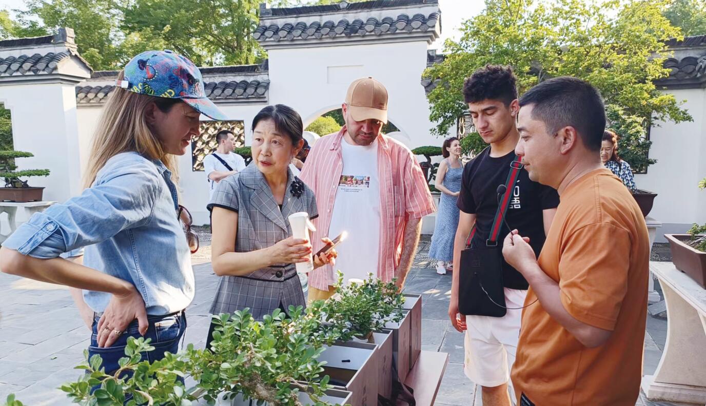 2018年和2023年两次邀请外籍友人到泰州盆景展览馆参观,累计参观人数达数百人,让外国朋友在欣赏泰州园林艺术瑰宝的同时还进行了互动交流,感受中国非遗技艺的独特魅力,泰州盆景名扬海外。