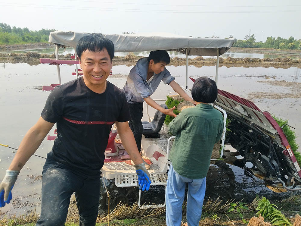 农场负责人王锦才说,2019年,他在白米镇和梁徐街道共流转了800多亩地种植稻麦,购置了拖拉机、插秧机、植保机和无人机等8台机械。今年小麦雇请本地机手抢收,今年麦收一结束,3位东北农机手就坐高铁赶来姜堰“接棒”作业,今年是他们与王锦才合作的第6个收获季。 今年55岁的赵峰,是黑龙江省佳木斯市富锦市兴隆岗镇五林村人,他的两个女儿都已成家,妻子在家只需要打理一熟水稻,这几年他都外出跨区作业。“带一双手就能挣钱回家,尤其是插秧机都加装了北斗导航系统,两端一设置,中途走起像无人驾驶。”