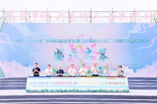 荷风送香气,竹露滴清响。6月28日,2023“苏韵乡情”乡村休闲旅游农业(靖江)专场推介暨靖江第七届荷花节在靖江市生祠镇东进村启幕。当天,近万名市民和外地游客共赴青绿,游古韵生祠,赏田园荷色,品生态风味。
