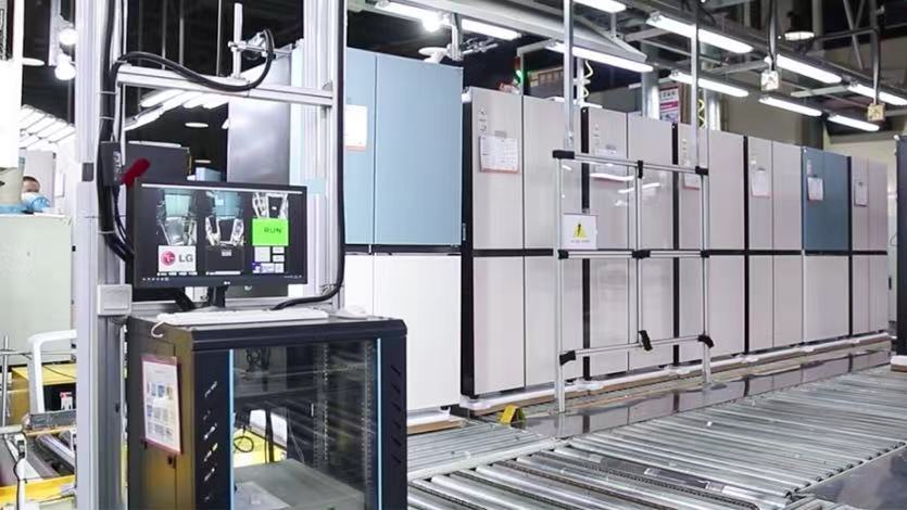 泰州乐金电子冷机有限公司是LG全球最大的冰箱生产基地,也是海陵区一家单体超百亿元的企业。眼下,乐金电子REF四号生产线,400多名工人在各自的区域忙碌。整条生产线上,冰箱的预装、发泡、组装、质检、包装等工作都在有条不紊地进行。据了解,这条生产线的产品是企业新研发的VS6双开门冰箱,拥有球形制冰机,保温效果更显著,外观设计也更符合用户的审美标准。作为省级智能制造示范车间,车间采用了多种智能化设备,提升了生产效率和管理水平。据车间经理陈飞介绍:“我们这条生产线平均日产2000-2200台冰箱,车间的智能化设备大约有95个,联网率达到98%以上,接下来我们车间的智能化率将会持续提高。”