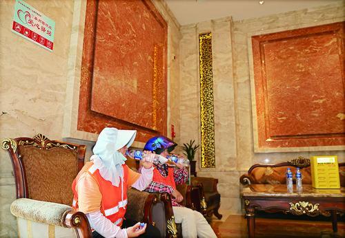 19日上午10点左右,在泰州国际金陵大酒店附近负责保洁的陈巧英、陈巧兰走进该酒店大堂北侧的爱心驿站喝水休息。陈巧英胳膊上被蚊子咬了两个包,她很快在驿站里的医药箱中找到了风油精。“我们保洁的路段有多个这样的爱心驿站,休息打尖很方便。”陈巧英说,驿站里茶水充足,充电宝和充电插头随时可以用,医药箱里除了创可贴、风油精、人丹等常见用品外,还有银黄颗粒冲剂、云南白药气雾剂等药材。 据介绍,在每年盛夏季节为户外工作者免费提供服务是泰州市爱心企业的一项传统活动,从最初的面向广大环卫工人、交巡警,到如今的外卖小哥、孤寡老人、城市志愿服务者、打工者以及需要帮助的人,关爱对象在不断扩大,加入爱心行列的爱心餐饮企业也逐年增多,今夏首批加入爱心驿站的餐饮企业共有95家。 |