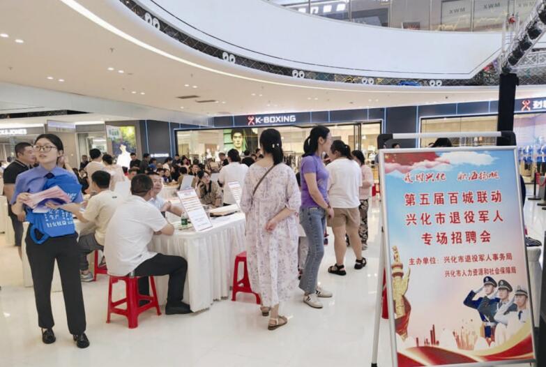 近日,兴化市“戎耀兴化 职海扬帆”第五届百城联动退役军人专场招聘会举行,吸引了200多名退役军人前来求职。