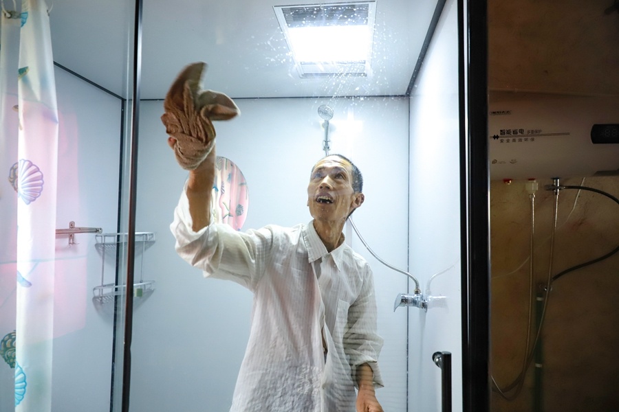 在靖江马桥镇新市村殿子埭,67岁的五保户江汝明这个夏天没有再为洗澡发愁了。他家卫生间原先非常简陋,经适老化改造后,安装了集成卫浴设施,配备坐便器、扶手、热水器、浴霸、花洒、台盆、置物架、灯具等,解决了如厕和洗浴两大难题。 马桥镇经伦村六旬村民何祖金视力一级残疾,适老化改造项目贴心地为他家添置淋浴设施、防滑垫、坐便器辅助支撑等。“我用起来非常方便。”何祖金说。