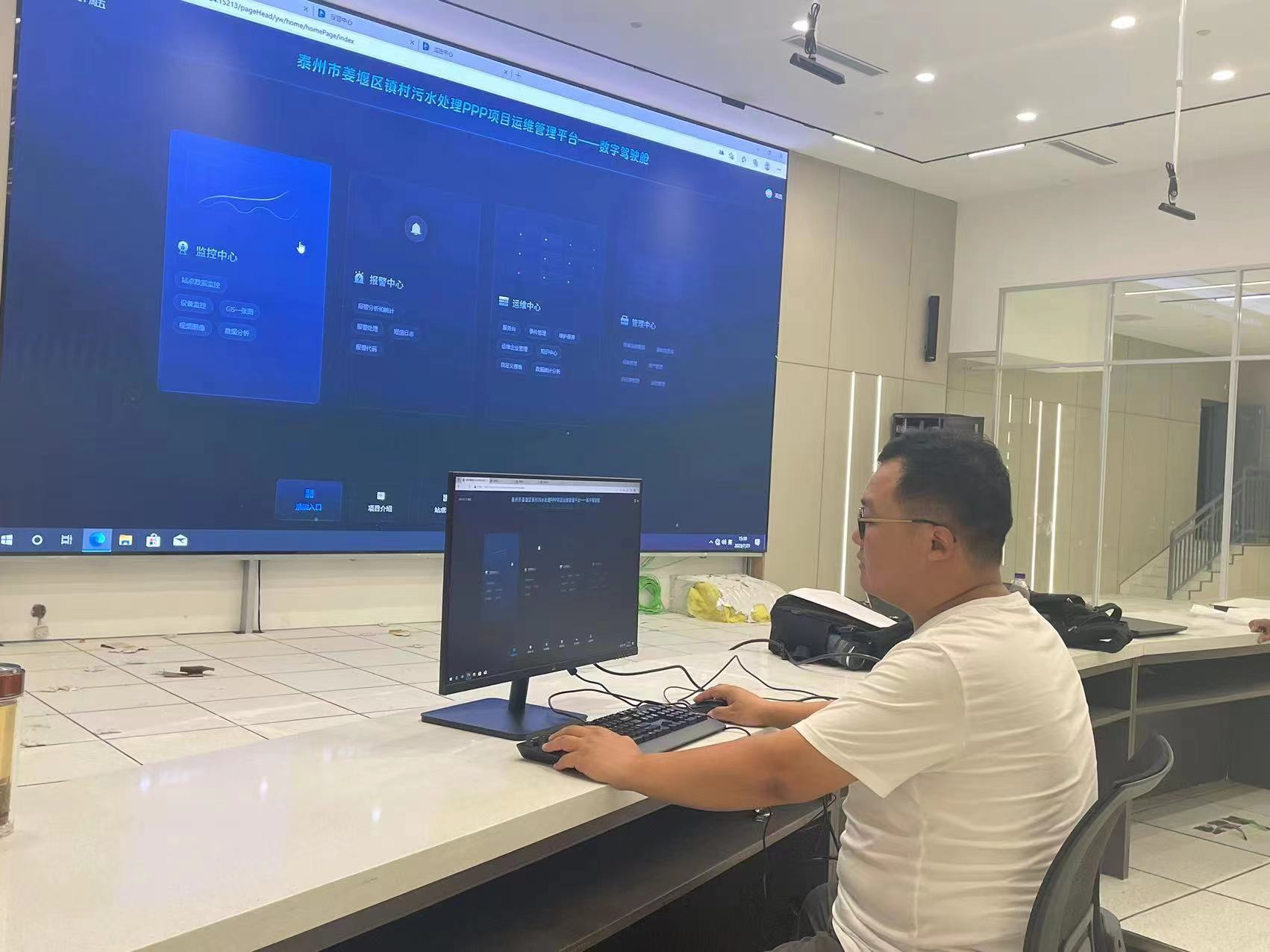 近日,走进泰州市姜堰区三水大道88号文体中心三楼,环境治理工作人员凌杰正在监控大屏前,查看污水设备运行情况。该处便是姜堰打造的镇村污水处理PPP项目运维中心。