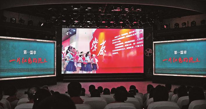 今年是抗美援朝战争胜利七十周年。70年前,十多万名志愿军烈士为国捐躯,用鲜血和生命谱写了一曲曲气吞山河的英雄赞歌。伴随着童声合唱《同在国旗下》的激昂旋律,第一篇章《一片红色的热土》将同学们瞬间带回70年前战火纷飞的朝鲜战场。大屏上,特级战斗英雄杨根思的伟岸身影再现,“人在阵地在”的誓言字字铿锵,“不相信有完不成的任务,不相信有克服不了的困难,不相信有战胜不了的敌人”的英雄宣言振聋发聩,点燃全场激情。英雄壮举令人震撼,英雄宣言令人动容,台下数百名学生全体起立,齐声高喊“请党放心,强国有我!”宣誓要接过英雄的接力棒,将“三个不相信”的革命火种传承下去。 “黄桥烧饼黄又黄哎,黄黄烧饼慰劳忙……”当熟悉的旋律响起,一曲《又唱黄桥烧饼歌》深情再现黄桥决战期间,黄桥人民千家万户赶做当地特产——黄桥烧饼,车推担挑从四面八方送往前线,还组织担架队抢运伤员,帮助部队取得黄桥战役的重大胜利,让同学们感受到了浓浓的军民鱼水情。 家乡是一首永远唱不完的歌,先辈们的不懈奋斗激励着每个人努力奋进新征程。第二篇章《一段奋进的岁月》通过“童眼看家乡”全景式展现了泰州高质量发展的生动画卷。“嫦娥之父”叶培建、中国科学院院士常进、全国劳动模范何健忠、中国好人张强……一个个从泰州走出的名人、院士,如满天繁星,璀璨夺目,他们用数十年如一日的执着与坚守书写着心底的家国情怀。泰兴市襟江小学教育集团的学生们还组成了“红领巾寻访团”,走近在城市建设发展中各行各业的奋斗者,记录他们的故事,学习他们的精神。 活动中,全国道德模范、全国劳动模范何健忠也来到了现场,在观看了以自己亲身经历改编的话剧《邮差》后,他走上舞台,勉励同学们:“要高举队旗跟党走,争做合格接班人。”