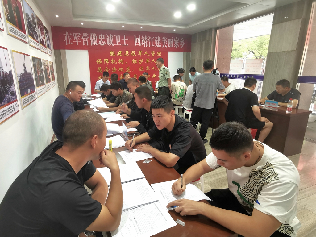 靖江市退役军人事务局移交安置科负责人介绍,“一件事”办理就是将退役士兵所涉及的退役报到、组织关系接转、预备役登记、社会保险转移接续、落户登记等15个原本分属多个部门的事项整合为“一件事”,在同个地点一次性办理,免去了原本返乡之后要到退役军人事务部门、公安部门、人社部门、医保部门等办理手续的麻烦,将以往要花费几天时间才能办理完的业务压缩在15分钟以内。 为鼓励返乡退役士兵积极参加学历提升和技能培训,靖江市还将苏州科技大学、常州大学、靖江中专校等学校招生老师请到现场,提供继续接受教育政策咨询服务,同时推荐优质企业近千个就业岗位,帮助他们了解当前就业形势,拓宽就业渠道。 |