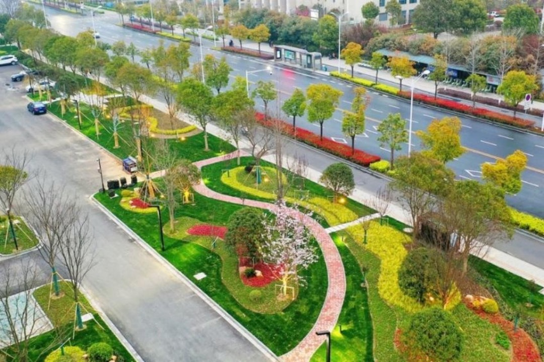 打造苗圃观光园是姜堰区深入创建国家生态园林城市工作的一个缩影。近年来,聚焦人均公园绿地面积不足的紧迫问题,姜堰区持续优化城市绿地布局,不断增加城市绿地总量。2022年6月,姜堰区中天植物园顺利完工,该项目填补了姜堰东南片区大型公园的空白,为周边居民提供了一处可游可观可憩的生态空间。 此外,姜堰区还积极摸排闲置空间,因地制宜见缝插绿,大力推进拆墙透绿、立体绿化、口袋公园等工程建设。在施工中不断优化资源利用,采用环保材料技术,减少自然消耗和环境污染,强调细节设计,注重园林元素的质感与配合,使建设项目呈现出和谐、统一的美感。在养护管理上,定期检查和维护植物健康、设施完善,保障园林景观长期可持续发展。