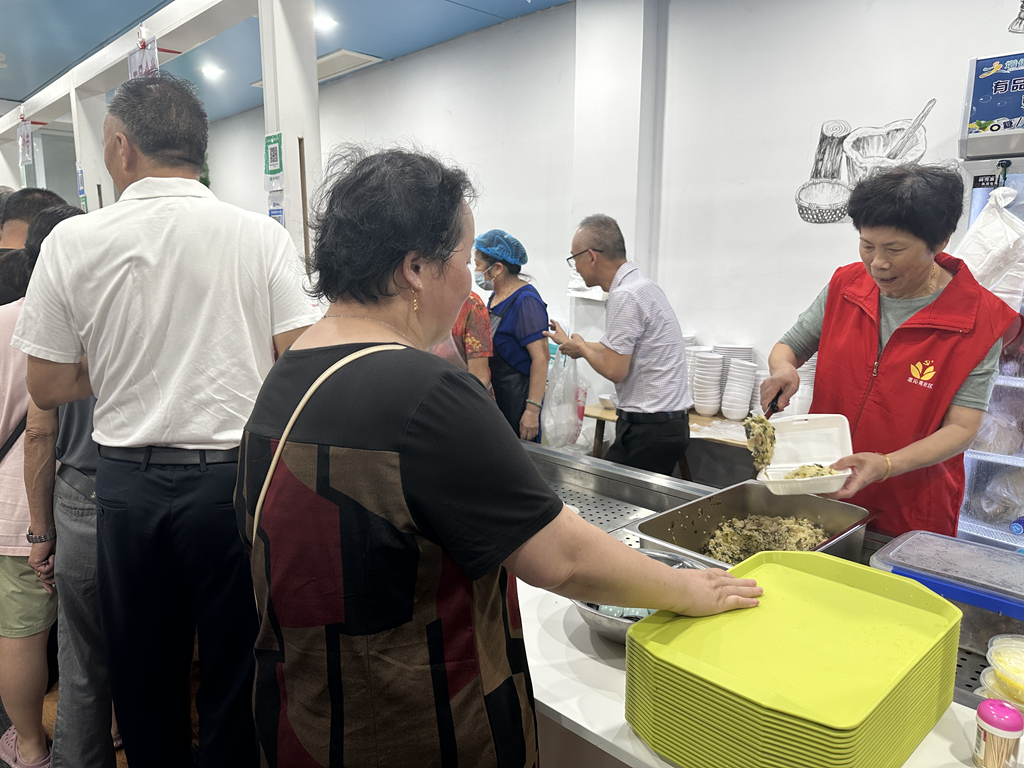 闻有米香,观有菜色。踏进江苏靖江澄靖园区办事处莲沁苑社区食堂,红烧大排、麻婆豆腐、雪菜毛豆、紫菜蛋汤等菜品整齐摆放,香气扑鼻而来。不少老年居民三五围坐,吃得津津有味。自今年7月食堂开张以来,社区老年居民每天都能吃上营养美味的餐食。