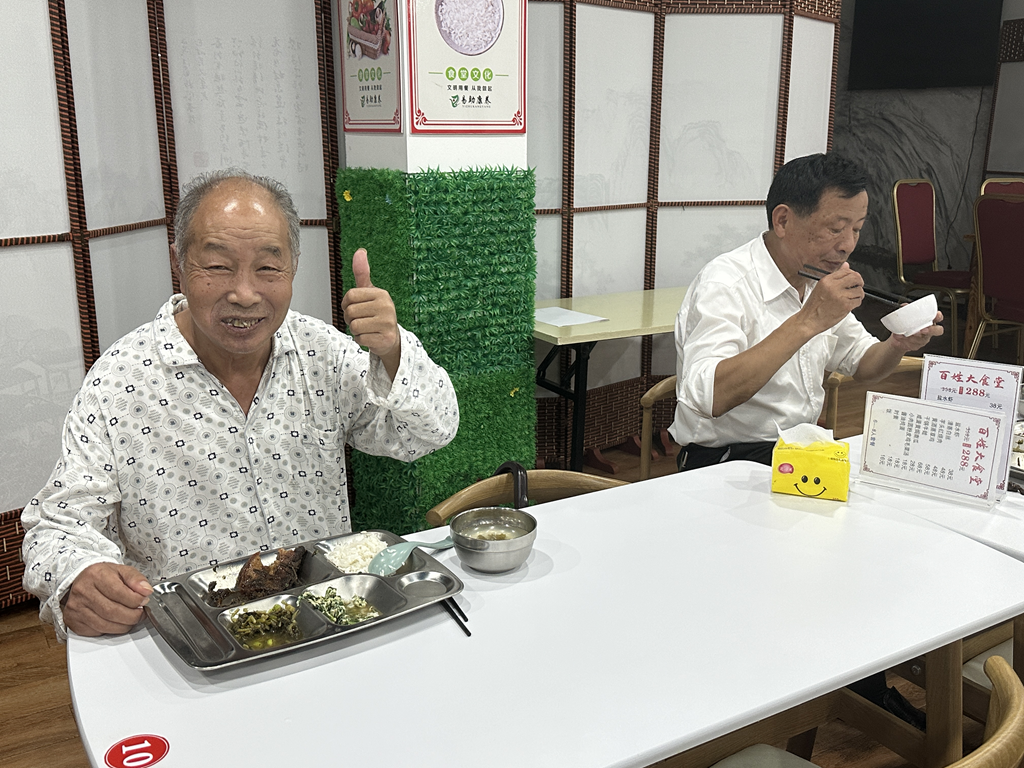 每天饭点一到,79岁的王金福便会和老友们在食堂里围桌而坐,看看电视,唠唠家长里短,静候热腾腾的饭菜。老人们纷纷称赞这里“好吃不贵!”莲沁苑社区党委书记、居委会主任刘宁介绍,为了让辖区居民吃上有营养、有温度、方便实惠健康的热汤热饭,社区积极探索“公益+市场”的运作机制,招引第三方机构投资运营管理,还联合社区医生为就餐的老年居民定制少油、少盐、少糖的清淡食谱,并通过政府购买服务的方式向社区内低保、60岁以上残疾人和优抚军人等群体发放了总价值57900元的免费就餐卡。