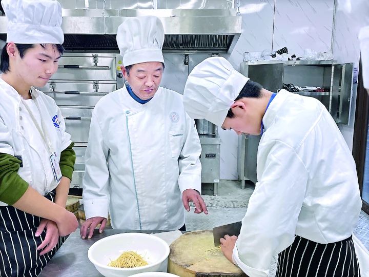 “干丝的粗细均匀一定要掌握好,既不能片得薄,切粗了,也不能片得粗,切薄了。”近日,“泰州早茶”进课堂开班仪式在泰州技师学院举行,中式烹饪高级技师、技师学院特聘烹饪专业教师王学桂现场指导学生剽制干丝。这是将泰州早茶首次融入专业教学体系的改革实招,也是进一步深化校企合作、产教融合发展的重要举措。