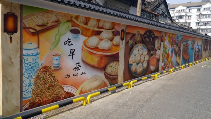 “做包子的场景很生动”“看到这个图,我想吃干丝了”……近日,在泰州市海陵区城中街道钟楼社区打笆巷,居民看着墙上的彩绘,感受着泰州人吃早茶的热闹场景。
