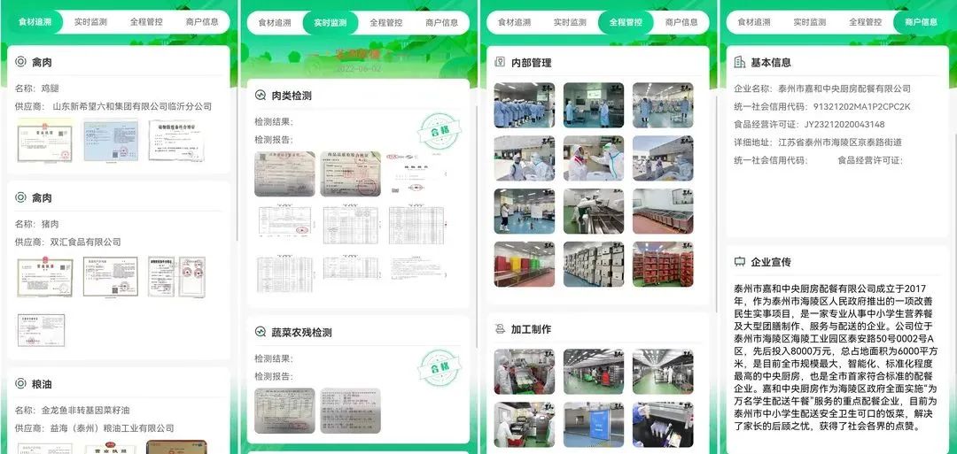 3月5日中午11点,家住泰州市海陵区的顾先生照例打开手机,扫描保存在相册里的二维码,在页面选项中找到女儿所在的学校和年级,点击查询,“今天吃白菜牛肉和青椒肉丝,肉是从双汇进的,白菜青椒农药残留都合格……”顾先生一边看一边向身旁的孩子奶奶转述,“以前想知道孩子在学校吃得怎么样,得麻烦老师和家委会,现在扫一扫就全清楚了,安心不少。”
