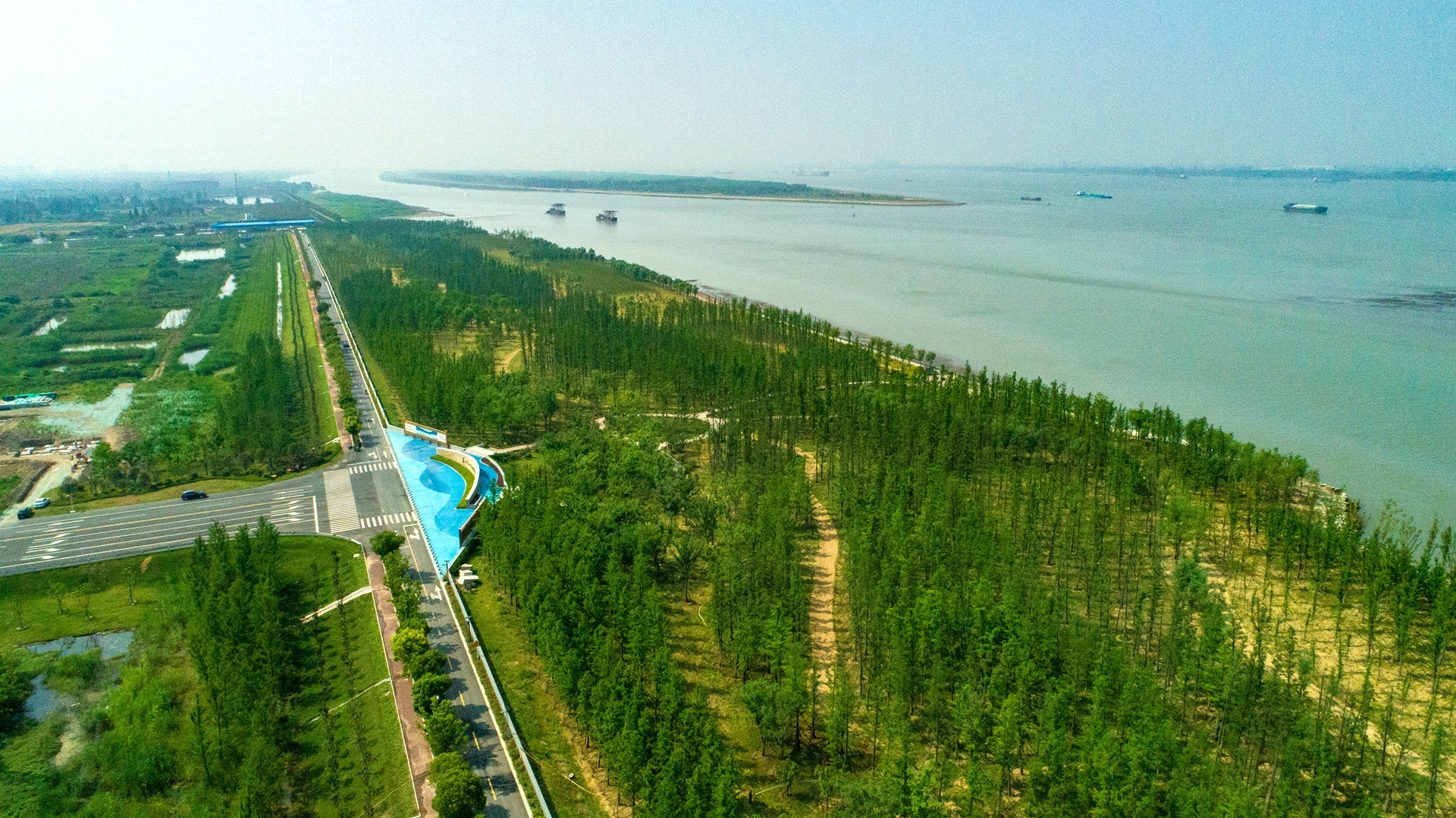 在生态廊道滨江段亲水平台前沿,依稀还能看到昔日小船厂的影子,如今成了春季烧烤、江泳爱好者的聚集地。身处长江经济带,同饮一江水、共护母亲河,泰兴市拿出了50%以上的长江岸线生态化修复,实施长江生态湿地和绿色廊道工程。工程全长约12公里,总投资6.2亿元,累计拆除沿线小企业9家,回收鱼塘、养殖场28家,清理长江“两违”6万多平方米,拆除长江岸线利用项目11个,建成绿化林带2000亩,恢复湿地3000亩,实现沿江生态的泰兴式蝶变,泰兴长江生态廊道创成省级水利风景区,成为全省“长江大保护”工作的示范样板。