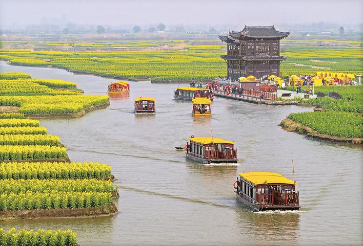 游客乘船游览千垛景区。周社根摄 满目金黄香百里,一方春色醉垛田。眼下的兴化正诗意涌动,迎来“千垛花开万顷黄”的绮丽盛景。3月26日上午,“水润兴化 如诗如画”2024兴化千垛菜花旅游季开幕式在千垛景区举办,诚邀八方游客来到幸福水乡,开启一场花漾之旅。市委常委、宣传部部长,副市长刘霞出席活动。 近年来,兴化依托垛田油菜花打造春季旅游盛会,致力将里下河水乡生态优势转化为宜居、宜游、宜业的旅游发展优势。刘霞在致辞时说,广邀海内外宾朋来到幸福泰州、水润兴化,感受水韵闲适的生态之美、江淮风华的人文之美、强富美高的发展之美,祝愿千垛菜花旅游季能够成为泰州乃至全国的一张春季旅游的靓丽名片。 兴化市委书记陈锋剑向获评国家级非物质文化遗产生产性保护示范基地的兴化市竹泓木船文化产业有限公司授牌。兴化市委副书记、市长殷俊生动推介了兴化“美在生态、美在文化”,以“只此垛田,不止垛田”展示了水润兴化的文化味与烟火气,热忱欢迎八方游客来这座大美水城、灵秀文城、旅游新城寻找令人神往的“诗和远方”。 兴化,是江苏省历史文化名城,是中国县域经济百强市、国家生态示范区。近年来,兴化积极打造“江苏大公园,人文梦水乡”的文旅融合新画卷,成功入选国家文旅部“文化和旅游赋能乡村振兴优秀案例”。为汇聚多方力量达成更广泛的合作,分享喜闻乐见的文旅成果,现场举办了2023年度优秀合作旅行商颁奖仪式、首届多彩兴化暖冬摄影展颁奖仪式及授牌仪式等,助推文旅深度融合,共同谱写文旅高质量发展新篇章。 花漾兴化,如何解锁花样玩法?活动现场,金牌导游张建声情并茂地作兴化春季旅游产品发布,分享实用的兴化打卡攻略,邀大家赏四季兴化,看四时繁花。同时,兴化旅游数字市民卡正式上线,升级后的兴化旅游数字市民卡适用景区增加到16个,适用人群扩大到全泰州。市民只需关注“兴化旅游”公众号,即可线上购买,55元可全年无限次畅游兴化。《水润兴化》邮册亦同步发布,该邮册浓缩展示了兴化的历史、人文、风光等内容,为了解兴化提供了崭新的视角。 随着寓意着“春的希望”的油菜花瓣播撒到花海之中,祥龙吉凤在天空舞动,开幕启动仪式将活动推向高潮。兴化向全世界发出浪漫的春之约:梦里水乡,垛上花开等您来! 据悉,2024兴化千垛菜花旅游季将持续至5月8日。活动期间,将举办42项相关活动,全面展示全球四大花海之一——千垛油菜花海的盛景和魅力。 |