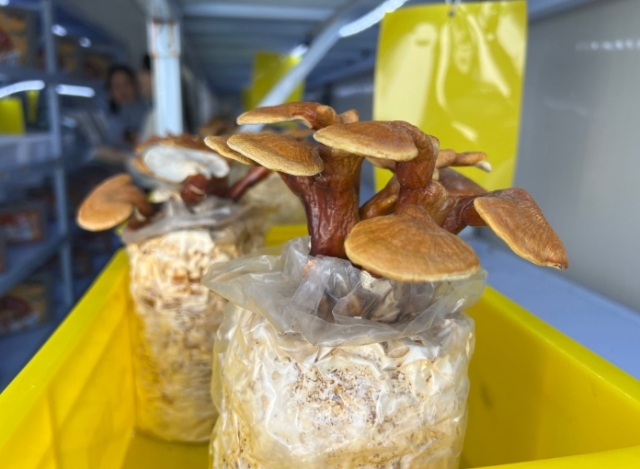 “这是正在生长中的金耳,一般0℃~4℃的温度适合它生长,它的胶原蛋白营养丰富。在该项目云种植·数智菌菇舱内可以看到金耳、羊肚菌、猴头菇等数十种菌菇的生长状态。方舱内可以模仿各种菌菇在自然界中生长所需的温度、湿度,展现菌菇的生长过程。”“菇菇部落”工作人员顾晓燕介绍道。 为了做强“菇菇”产业链,今年小杨社区还引进新的农业项目——赤松茸。“整个项目占地14亩,叫做生态循环农业项目,分为棚内种植和室外种植。种植模式也有创新,分为纯稻草、稻草加菌渣以及稻草加玉米芯等基料种植模式,希望以此观察赤松茸的产量高低如何?”谈及赤松茸的培育方式,王政娓娓道来,“引进赤松茸项目是为了不断做强菌菇产业链、丰富菌菇品种,以此擦亮社区菌菇品牌。”