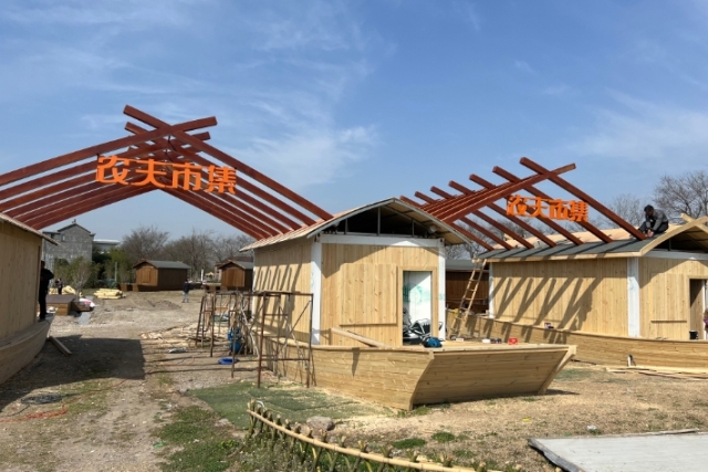 裁剪、绑扎、钉合……径直走进该社区“小杨人家”民宿项目,记者见工人师傅正在紧张施工,现场一派繁忙景象,一个个形似木船造型的集装箱整齐排列。 “这几条类似木船造型的集装箱是用来干啥的?”带着这样的疑问,记者向该社区党委书记王政询问道。“这里原来是一块闲置场所,我们准备将它打造成地标性的特色消费集聚地——农夫市集。我们邀请专业人士结合里下河水乡地域文化,将原有的集装箱设计成木船造型,以此全面全区的农副特产。”王政介绍说,目前姜堰区已经创成省级特色田园乡村5个、正在创建省级特色田园乡村3个,于是他们设计了8条“木船”,每条船将代表一个村,全面展示该村的风土人情、特色文化以及产业,为“小杨人家”的乡村旅游项目再添亮色。
