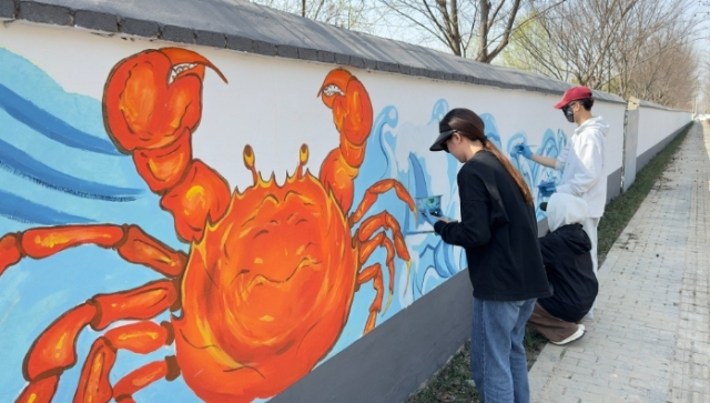 日前,记者到上海路采访时,泰州学院美术学院的学生正在各自负责的画作前忙碌着。他们一笔一划地进行线条勾勒、描图、修整、上色,精彩亮相、生动形象的墙绘作品,为路两边的白墙换上了“新衣”,让原本“冷冰冰”的白墙瞬间灵动起来。正在涂色的孙怡宁告诉记者,参加墙绘工作是一次很好的社会实践经历,想到能为姜堰乡村振兴和旅游发展做点贡献就很开心。 上海路两侧的墙绘有500多平方米,主题围绕“人文姜堰”和“活力姜堰”两个部分展开,通过“水乡悠悠”“田园风光”“教育风云”三大板块,融入古茶花、麋鹿、摇橹船等具有姜堰特色的城市元素,全方位描绘姜堰区的水乡特色、历史文化和地域特色,讲述属于城市的故事。