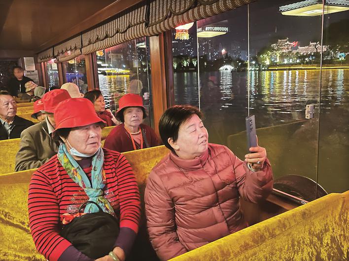 当晚,游客们乘画舫夜游凤城河。船行中,沿途传来悠扬的戏曲声,河面波光粼粼,沿岸名楼、名园、桥梁流光溢彩,游客们在微风习习中饱览水乡风景,感受江南的婉约灵秀之意。“在泰州一路畅玩,体验感很好,远超我的想象!”广东惠州游客陆奕中说。