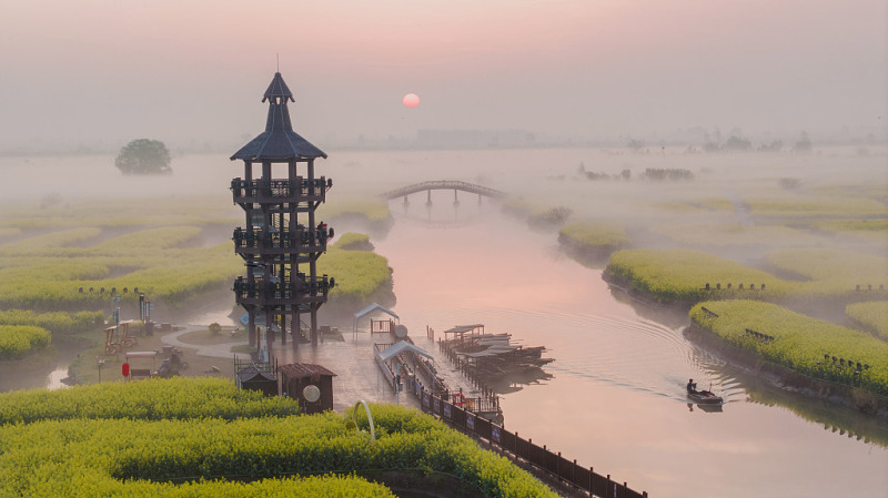 连日来,随着千垛菜花旅游季大幕开启,位于江苏省兴化市里下河国家湿地公园的东罗鸟类观测点热闹非凡。站在观测塔上眺望,湿地公园风光尽收眼底。 经过多年创建,里下河国家湿地公园已完成自然修复工作,将继续进行湿地公园二期建设,向李中水上森林西北侧扩建。