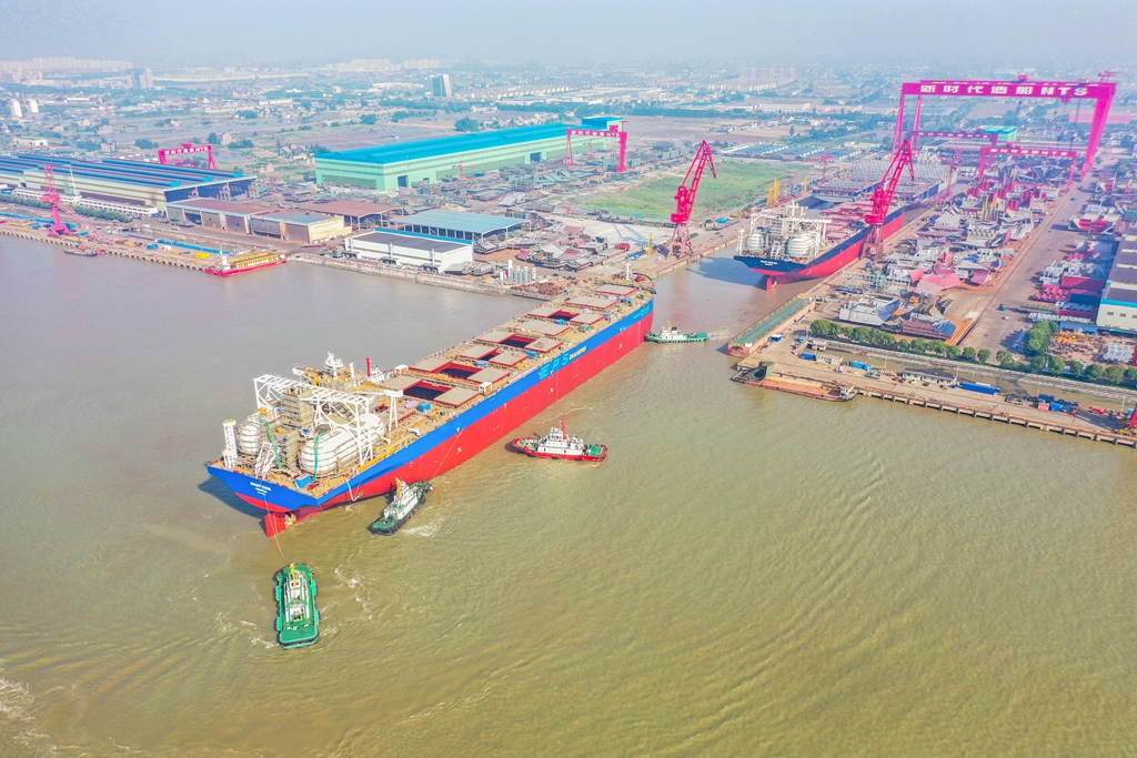 全国造船看江苏,江苏造船看靖江。作为全国最大的民营造船基地,国家级船舶出口基地,以新时代、新扬子造船为代表的靖江船舶企业2023年新接订单增长71%,手持订单、造船完工量分别增长29.9%和12.6%,船舶产业规上总产值增长39.9%,在全球造船业中占据领先地位。 新时代造船所在的靖江经济技术开发区,解放前,这里洼田密布、河道纵横,渡江大军曾在此集结,六助港、罗家港等,都是重要的渡江点。今年100岁的老船工陈子根,当年便是从罗家港出发,运送十兵团第29军的战士过江。 时过境迁,如今这片土地港口码头吊机林立、现代化厂房鳞次栉比、生产机器轰鸣不绝,已经成为靖江经济发展的主阵地、主战场、主引擎,坐拥国家级经济技术开发区、国家一类开放口岸、保税物流中心(B型)三块“金字招牌”。