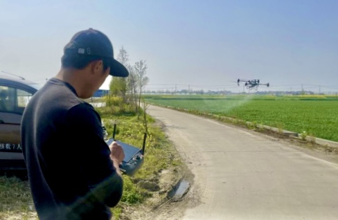 4月24日,兴化市戴窑镇种粮大户马月灿订购的一批化肥直接送到了地头,他的无人机立即装料起飞播撒化肥。他告诉记者,现在乡村道路等级高,而且四通八达,种粮、卖粮方便得很。