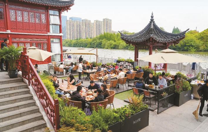 为满足外地食客对早茶的期待,很多门店延长早茶供应时间,“早茶吃到中午”现象相当普遍。各早茶店还创新推出“园林+早茶”模式,让食客在青砖黛瓦的美景中品东方妙意;推出“游船+早茶”模式,让游客在品美食的同时欣赏凤城河美景;推出“早茶+演艺”模式,让游客在吃早茶时,欣赏画舫佳人弄琴、倾听亭台古乐。 这个假期,早茶名店、咖啡潮店、非遗手作体验、乐队等汇聚老高桥市集,“市集+早茶”模式持续火爆,每日接待游客约5000人次,每日总营收超10万元。这里,泰州干丝、鱼汤面、蟹黄包等特色早茶让游客流连忘返;时代照相馆、驼着冷饮箱的二八大杠等一幕幕怀旧场景,给游客带来奇妙的穿越体验…… “露营+村游”受游客追捧 “五一”假期,泰州市户外露营、亲子研学、乡村旅游备受追捧。泰州市区老街、桃园等地开展“五一国潮宋韵乐活季”国风市集,在欣赏国风表演、民乐演奏、户外音乐会的同时,大量游客在桃园草坪上游戏、露营,沐浴温暖的阳光。 溱湖旅游景区举办玩咖工坊、躺赢音乐会、巡游快闪车、鹊仙岛电音戏曲夜等系列精彩活动,一波又一波游客被种草,前往体验打卡。 兴化多条田园乡村旅游线路同样备受青睐。游客们在千垛镇陈杨村文旅露营基地打羽毛球、体验户外烧烤,在大垛镇管阮村欣赏板桥道情,在陈堡镇蒋庄村开展乡村研学游,在里下河国家湿地公园观赏水上孔雀舞表演、独竹水上漂、鹦鹉杂技表演、里下河风情小调演绎等特色节目…… 为了让市民在家门口乐享“诗和远方”,靖江市马桥镇推出“万物皆可爱·五一FUN轻松”主题文旅活动,让游客参加趣味解压游戏、制作中药香囊、体验推拿按摩和中医艾灸等;姜堰区娄庄镇杨李小田园露营基地,推出烧烤、露营、垂钓、游船等,前往打卡的本地游客每天络绎不绝;医药高新区(高港区)凤栖湖景区举办龙虾节,龙虾、啤酒、烧烤等美食琳琅满目,加上丰富多彩的节目和好玩有趣的游乐设施,每天吸引近2万名游客。 各地文艺演出异彩纷呈