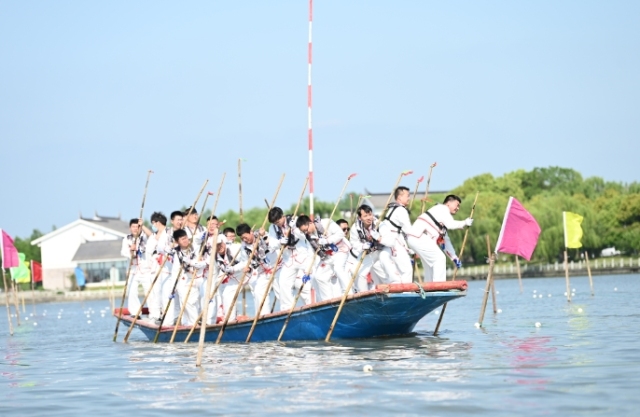 在让游客感受自然风光的同时,景区推出众多主题式、沉浸式游玩项目,以“武侠风”为主题的沉浸式剧情式的活动,让游客化身名门大侠,在如画般湿地美景中开启江湖“修炼”之旅;还有玩咖工坊、躺赢音乐会、NPC巡游等一系列精彩活动,让每一个心有江湖梦的游客都能真真切切地体验江湖豪情、领略溱湖风光。古风与现代的碰撞更为游客提供多元化、高品质的旅游体验。来自盐城的杨富红坦言:“每一次来溱湖的感觉都不一样,这次不仅感受天然氧吧,还体验了精彩活动,身心都得到了极大放松。” 最值一提的是2024“康养名城 活力姜堰”溱湖篙船大赛为溱湖旅游带来可观客流量。随着预赛、复赛、决赛依次进行,每天岸边都聚集着前来观赛的游客。他们看着选手们划动着竹篙,船只如离弦之箭在湖面上破浪前行,激起层层浪花,惊叹选手们出色的撑船技巧和团队协作能力,享受着运动趣味,愉悦身心。这场赛事也成为该区依托自身资源禀赋推动体育和旅游深度融合的创新之举,真正做到让体育赛事带来的“流量”转化为文旅消费的“留量”。泰州市姜堰溱湖景区旅游发展有限公司副总经理李扣兰表示:“我们将借助‘五一’假期的旅游热度,结合特殊节日开展系列主题活动,为游客提供多元化、高品质的旅游体验,满足游客沉浸式领略里下河风情的需求,进一步擦亮溱湖旅游品牌。”