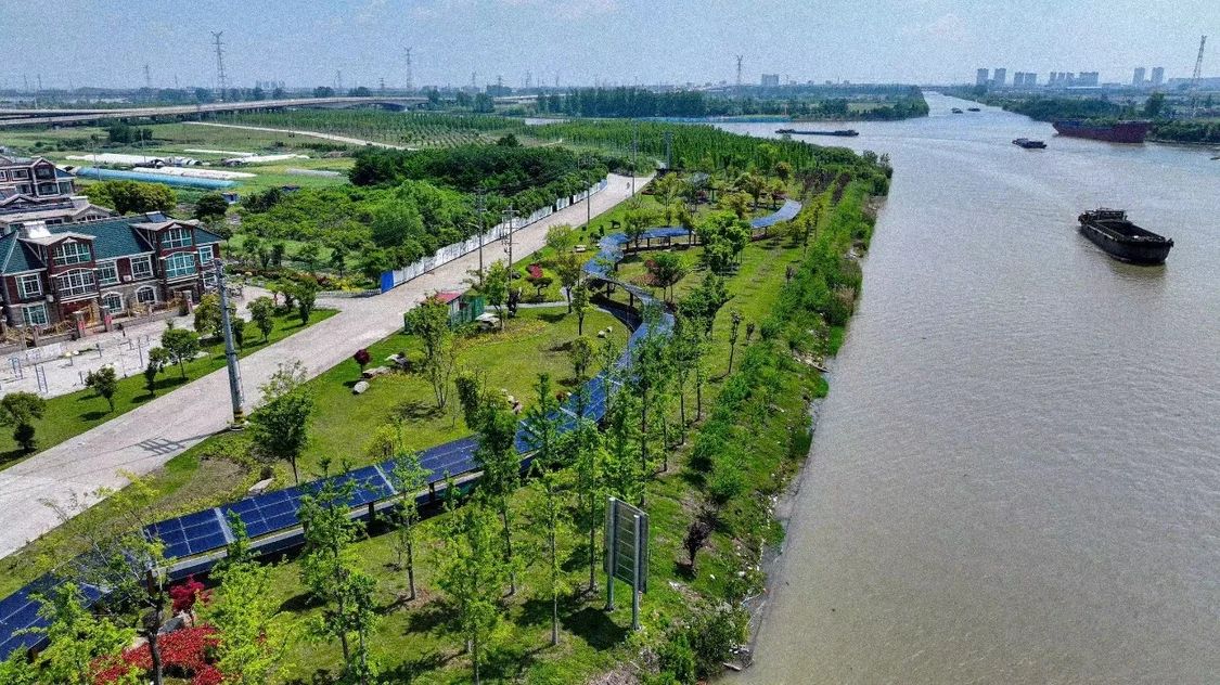 初夏时节,泰州主城区新通扬运河水面波光粼粼,河畔绿意葱茏,数百米长的彩虹光伏长廊笔走龙蛇,串起悠悠绿意与现代科技的默契互动。这片生机盎然的绿地有一个颇为诗意的名字——百舸生态园。很难想象,这里曾是海陵区的一处“生态疤痕”。 紧扣时代脉搏,勇探转型新路