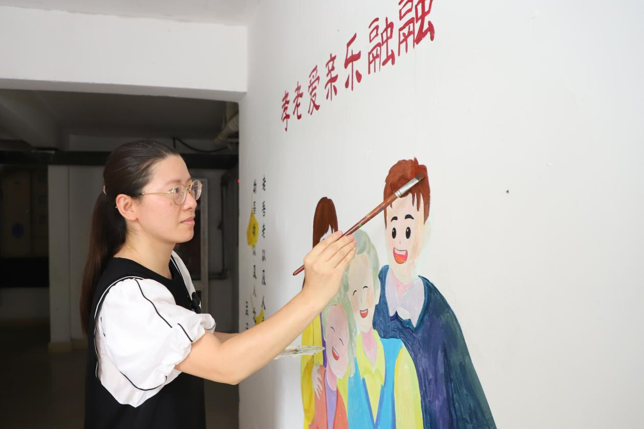 △图为城南办事处睦邻点的共享图书角。 去年下半年,城南办事处把睦邻点化身为“图书角”,在各村(社区)睦邻点打造社区“共享图书角”,选定红色书籍、法律读本、儿童读物、生活休闲类、科普教育类等书籍报刊,满足居民的阅读需求,让居民在家门口就能以书会友,共享阅读之乐,让书香飘得更远。各村(社区)还积极开展“亲子读书会”“共读一本书”等阅读活动,营造良好的阅读氛围。 营造“开门见文明”的楼道 楼栋作为小区管理的基石,是邻里情感交流的单元平台。在不少小区,文明、孝老、睦邻等主题墙绘逐步取代了昔日的“脏乱差”和广告“牛皮癣”,整洁靓丽的“文明墙”让和谐新风扑面而来,楼道彩绘不仅美化了环境,也提升了楼宇的文明程度。