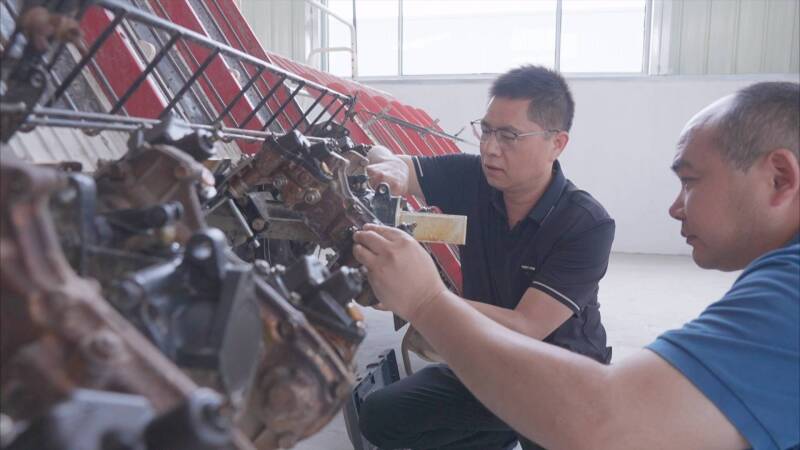 在罡杨镇田缘家庭农场,海陵区农机服务中心的工作人员现场指导农机手检修、调试和保养农业机械,大到发动机,小到螺丝钉,不放过任何隐患点,让农场主在夏收前吃下“定心丸”。