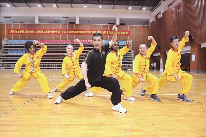 “大王慷慨悲歌使人泪下,待妾妃歌舞一回……”来自泰州市梅兰芳京剧团的专业男旦演员庞钧驰登台表演《霸王别姬》选段,当他扮演的“虞姬”踮着碎步刚一亮相,立马引发全场尖叫,一段精彩的剑舞更是看得现场师生如痴如醉,掌声雷动。表演结束,美国师生纷纷上台和“虞姬”合影。 “So cool!So beautiful!”来自美国迈阿密的学生Keedy Brown Christine一脸惊奇地说,“我是第一次零距离接触京剧,太有意思了!男扮女装更是让人意想不到!” 脸谱作为戏曲中区分不同角色性格和身份的造型艺术,是中国元素的典型符号之一。活动现场,省泰中学生和美国学生一对一结对,一起在老师的指导下绘制京剧脸谱,不少结对学生还在画作上签名,互赠作品,作为彼此友谊的见证。 武术同样是我国国粹之一。在“中华武术体验”环节,泰州市武术协会副秘书长蔡国庆为大家展示了精彩的后空翻、南拳和五步拳,并一招一式教授中美学生练习拳、掌、勾手、弓步、马步、扑步、虚步等基本武术拳法。一些美国师生意犹未尽,纷纷穿上武术服再次“过把瘾”。