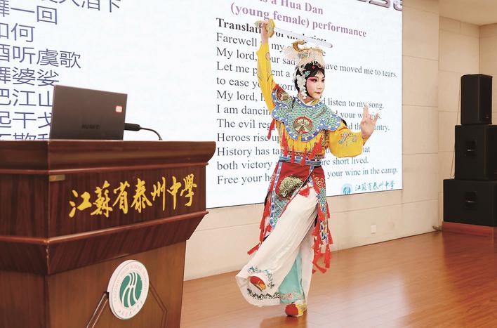 6月22日至24日,“锦绣江苏·美国青少年交流营”活动走进泰州,来自美国五个州的41名师生展开了为期三天的特色校园行、历史人文之旅、科技体验之旅、田园生态之旅。一路上,大家听京剧、画脸谱、练武术、品早茶、游溱湖,沉浸式体验中国传统文化民俗的深厚魅力。 体验传统文化,感受国粹魅力 “京剧是中国国粹之一。出身京剧世家、祖籍泰州的梅兰芳先生是第一位带着中国京剧走向世界的京剧艺术大师,他的艺术风格独特,被誉为‘梅派’。”22日上午,美国师生走进江苏省泰州中学,开展“梅韵京腔”活动。