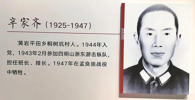 此前,寻亲专班查阅多方资料和线索,初步判断合葬墓中的“辛家其”烈士为台州市黄岩区人,随即联系黄岩区退役军人事务局请求协助。黄岩区退役军人事务局反馈,该区平田乡的辛家齐烈士是1947年在孟良崮战役中牺牲的。 “加”与“家”不同,“其”与“齐”不同,可能是当年合葬墓立碑时误写。令人困惑的是,为什么牺牲时间和战役不一致?此前,20军将士后代提供的英烈名单上,清楚地写着“辛加其,1949年在永安洲牺牲。”会不会是中华英烈网录入信息时搞错了? “不到现场,你永远不知道真相是什么!”寻亲专班商量后,决定去实地走访。 柳暗花明又一村 得知泰州来人核查辛家齐的情况,辛明杰、辛明法立即放下手头所有的事到村头迎接。 群峰环抱的美丽村庄桐树坑,曾是中共台属特委机关驻地,也是抗日战争和解放战争时期台州的革命根据地,被称为“高山上的战斗堡垒”。 “参军上战场,坚决不做亡国奴!”在这样的红色氛围里,桐树坑村参加革命者众多,辛家出去的人也多。“除了小叔辛家齐,我们家还有二伯、堂伯、堂婶都参加了革命。”辛明杰说,1925年出生的辛家齐是当时家中最小的孩子。 “我小叔参加过孟良崮战役,但他是在渡江战役前牺牲的。和小叔一起参加渡江战役的堂婶蒋夏香告诉我爸,辛家齐是排长,渡江前他自请加入先锋队冲在最前头,他所在的排被命名为‘辛家齐排’。那场仗打得很惨烈,小叔所在的先锋排都牺牲了。”今年71岁的辛明杰回忆说。 据了解,蒋夏香1938年起从事地下工作,后参加浙东游击队,先后参加鲁南战役、淮海战役、渡江战役,2006年去世。 “战时很多战士的信息和实际情况会有出入,我们发现辛家齐的牺牲时间等与泰州方面提供的有出入,第一时间寻找亲属确认情况,发现中华英烈网上的信息有误。”黄岩区退役军人事务局优抚褒扬科科长金国华说。 在桐树坑村的中共台属特委机关旧址纪念馆,记者看到了辛家齐烈士的生平简介和战斗故事,他英勇牺牲时才24岁。 结合多方渠道提供的资料和信息,大家最终确认泰州合葬墓中的“辛家其”即台州市黄岩区平田乡的革命烈士“辛家齐”。 辛家人终于了却一桩心事