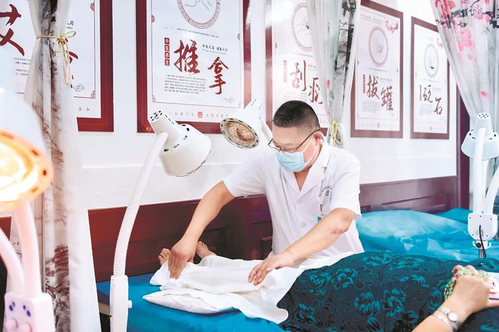 针灸、推拿、穴位贴敷……海陵区城西街道社区卫生服务中心国医馆是省五级中医馆。步入馆内,淡淡药香,浸润在角角落落。数百平方米的开阔空间,开设了中医外科、中医皮肤科、中医针灸等服务专区,形成了一批优势病种的临床治疗方案和标志性技术项目。类似省五级中医馆,泰州全市已有16家,省五级中医馆可规范开展10类20多项中医药适宜技术服务,配备超300种中药饮片及多种中医治疗设备。 由此,简、便、验、廉的中医药服务,在越来越多的市民家门口生根、发芽。据悉,近年来,泰州市以创建全国基层中医药工作示范区为契机,健全基层中医药服务体系,县办中医医疗机构(医院、门诊部、诊所)覆盖率100%。所有基层卫生医疗机构都建有标准化的中医馆和中医阁,20%建制镇卫生院(社区卫生服务中心)中医馆服务能力达到五级标准。