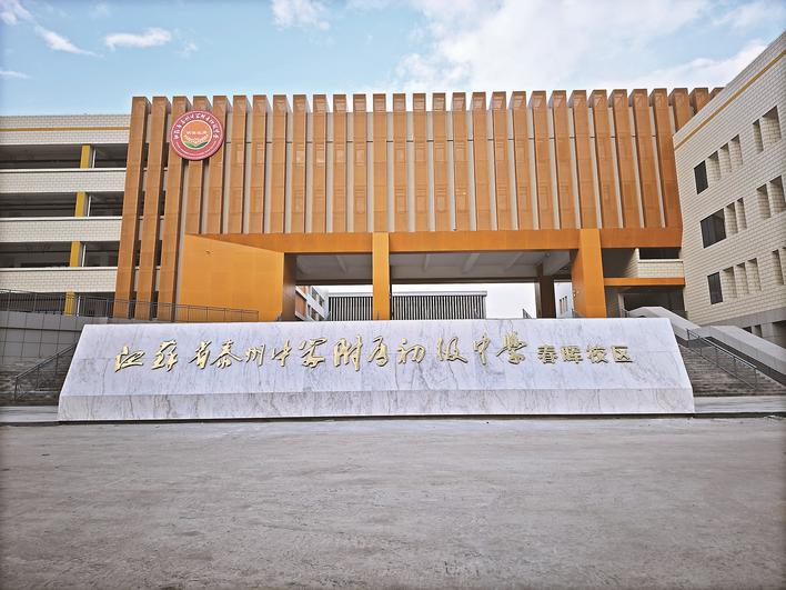 “作为新学校,春晖校区从建设以来就受到了市民的关注,我们也希望通过学校、家长和学生的共同努力,打造成‘老百姓家门口的好学校’。”省泰中附中副校长顾春宝说,目前学校有初一年级13个班、600多名学生,40名教师均来自省泰中附中凤凰校区。学校实行“一校两区,一体管理”的办学模式,两个校区的初一年级老师一起备课、一起教研。学校硬件设施先进、校园环境一流,配建有录播、书法、创客、舞蹈教室和心理辅导室等,并建有全市首个地下智能接送系统。 省泰中附中春晖校区是泰州市立足于推进义务教育优质均衡发展实施的重要工程,也是落实“十四五”城区中小学布局和建设规划、有效化解城区“大校额”“大班额”问题、策应“一轴一核三极三城”城市发展蓝图、满足群众共享优质教育资源的具体举措。