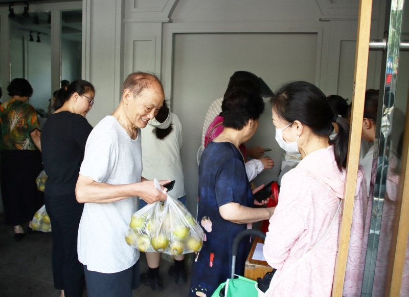 近年来,泰州市海陵区广泛组织人大代表开展微调研、收集微建议、领办微实事,实打实解决一批网格急难事、民生关键事。今年7月,人大代表在网格走访调研时发现,街道固定资产陵园路43号门面房已闲置近两年。而城市居民对安全实惠的绿色食品需求较大,购买渠道却有限。于是,将闲置门面房与居民需求相结合,将该处打造成助农惠民直销点。人大代表们主动与苏陈镇、红旗街道、城西街道等出产特色农副产品的农户取得联系,为居民提供翠冠梨、大米、葡萄、草鸡蛋等新鲜、绿色、实惠的农副产品。 自8月13日正式开业以来,助农惠民直销点销售持续火爆,为周边居民带来了实惠和便利。直销点每周营业2天,分别是周二和周三,营业时间为上午8点至12点、下午2点至6点。“开业以来,我们已销售近万斤本地农副产品。今天上午的营业额就达到了5000元。”高桥社区第一网格人大代表许红霞介绍,“直销点里的农副产品进货价格是多少我们销售价格就是多少,充分、真正惠民。”店里的两名营业员都是志愿者,她们无私奉献,为直销点增添了一抹暖色。