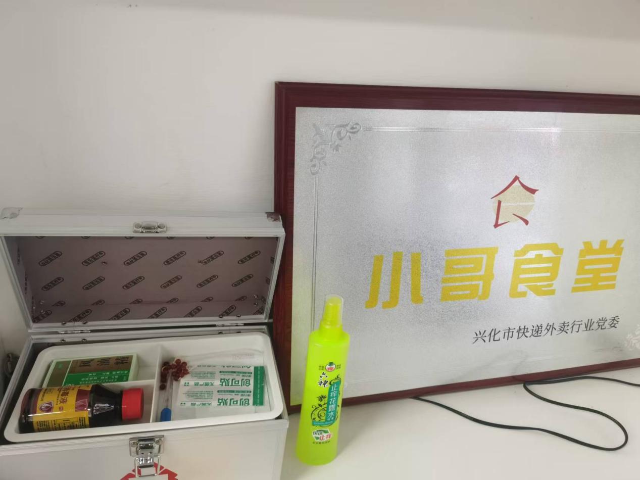 吾悦广场是兴化最火爆的商圈之一。下午3点多,吾悦金街新沙县小吃店,老板周雄正忙着打扫收拾。走进店内,“小哥食堂”牌匾映入眼帘,旁边还放着医药箱,里面有口罩、防暑药、创可贴等医药品。“风里来雨里去,骑手们不容易。”周雄说。前段时间天气炎热,不少骑手吹空调感冒了,他特地在医药箱里添置了感冒药。 “吃饭打折,还能赚钱吗?”记者问道。 “能,但不多。”周雄乐呵呵地说道。“外卖骑手就餐时间与其他人是错开的。”周雄解释说,他们中午一般要1点后,晚饭在7点后,最迟的会到9点,部分还有夜宵需求。“骑手们就餐时正好是店里人最少的,虽然赚得少,但服务了他们,还赚了人气,这笔账不亏。” “对新骑手来说,充电服务太贴心了。”才干了7个多月的美团外卖骑手杨友勇深有体会,“刚跑那会,没买充电宝,手机快没电的时候赶紧找同事借,既影响了工作又耽误了挣钱。”