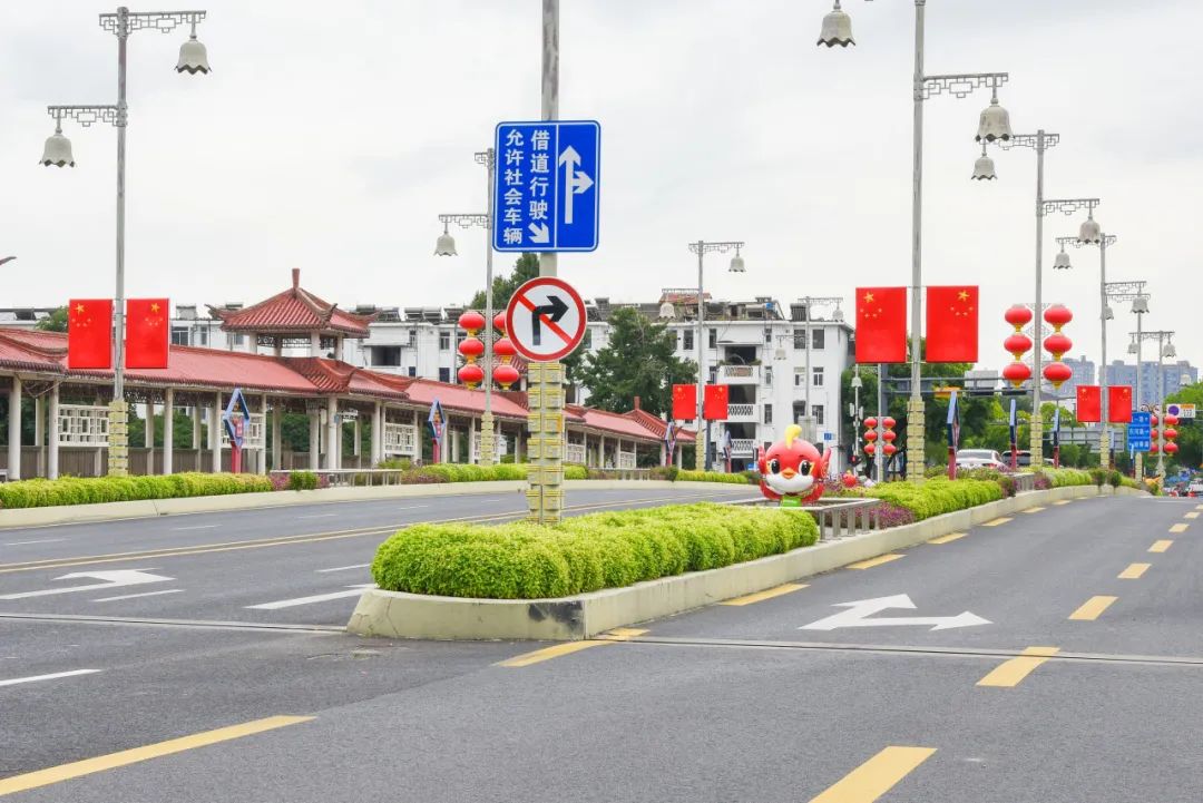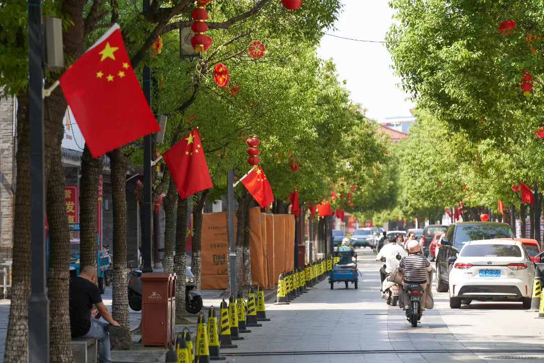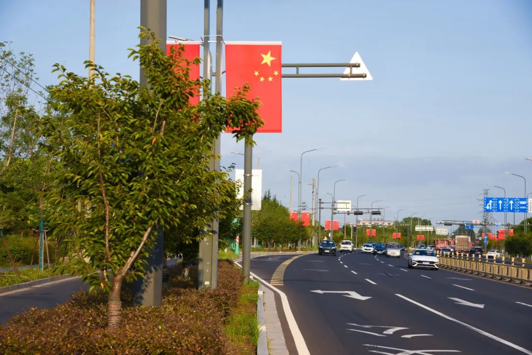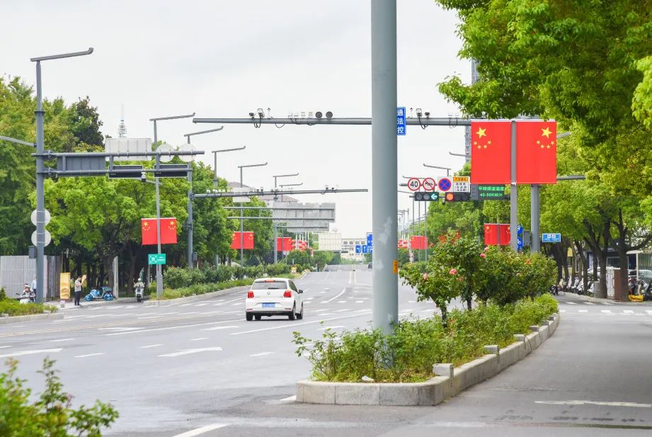微风吹来 道路两旁翻涌起红色海洋 穿梭在泰州的大街小巷 满眼的绿景与红旗相互映衬 满满的自豪感油然而生
