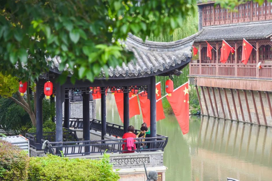 看! 稻河古街区、梅兰芳纪念馆等 宁静古朴的气质 也被红色点燃! 鲜艳的红旗、红灯笼 点缀着美丽的泰州风光 喜庆的节日气氛洋溢