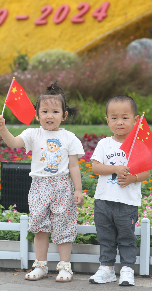五星红旗在手中挥动 每一个瞬间都溢满幸福 每一抹鲜艳的“中国红” 都是对祖国最深情的祝福