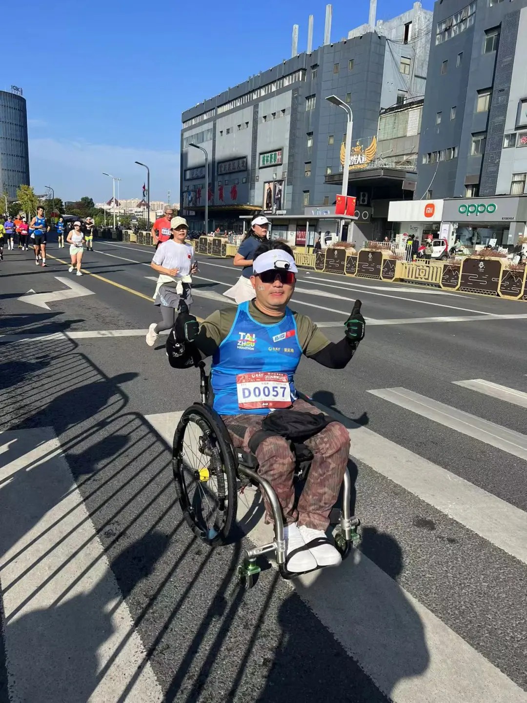 10月20日下午1点不到,来自福建霞浦的轮椅马拉松选手王璟到达2024泰州马拉松暨大运河马拉松系列赛(泰州站)的终点,用时5时3分51秒,完成了他人生中的第54个全马。