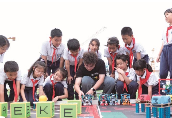 为在教育“双减”中做好科学“加法”,海陵区积极探索基础教育为高等教育培养输送拔尖人才的有效途径,组织区级科技教育共同体,打造科教课程体系或课程群,初步形成“小初贯通+校内外融通”的区域科技教育特色。各校除开足开齐各类科学课程、设立科学社团,更汇聚多方科普资源、协同社会各方力量、动员广大科技工作者,一方面“请进来”,开展科学家精神进校园、科技节、科普大篷车等活动;另一方面“走出去”,组织学生前往科学教育场所,进行场景式、体验式科学实践,促进科学素质提升。此外,还积极构建二附中、城东小学、实验小学、海光小学等“学校科技群”,小初一体举办中小学生AI创意编程比赛,举办“海陵区青少年科技探索营”。如今,科学教育已成为海陵义务教育的靓丽风景。