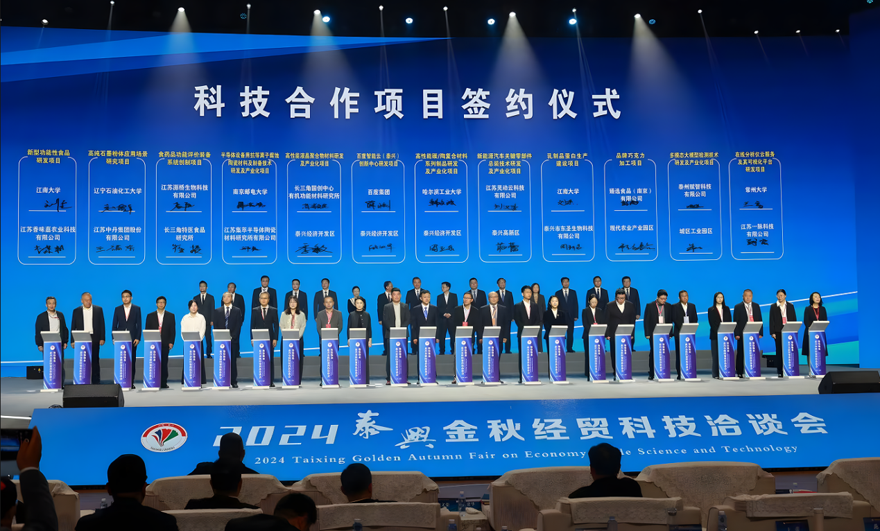 人才是打造新质生产力的关键。泰兴持续深化青年友好型城市建设,通过“院士+平台”、“院士+项目”、“院士+人才”创新体系,引入18名院士、48名国家级人才深度参与项目产业化。其中,清华大学李亚栋院士领衔的夏禾科技新材料项目打破了OLED材料壁垒,实现了核心材料的国产化和自主化;江南大学金征宇院士、高敏杰教授分别领衔的新型替代蛋白食品项目、多梯度生物反应器项目也成功落户,标志着泰兴在长三角区域生物经济创新方面迈出了坚实步伐。 金融服务保障方面,泰兴打造了覆盖全市六大特色产业的百亿级基金矩阵,通过“母基金+子基金+直投项目”的模式,为企业提供全生命周期的金融支撑。今年1-9月份,全市累计工业开票销售1673.58亿元,增长15.88%。 “泰有引力”,招商引智共绘未来 泰兴自7月20日起正式擂响“双招双引”百日赛,以“开局就是决战、起步就要冲刺”的姿态,用创新破题、用项目答题、用成效验题。谈合作、寻商机、叙友谊,“泰有引力”释放出无限活力。今年以来,中科算力中心江苏分中心、集萃光刻胶树脂等37个高科技、高质量、高效能的重量级项目落户泰兴。期间,“链式招商”成为泰兴的一大法宝,泰兴明确“强链加固、补链填白、延链拓展”的招商路径,精准定位并大力引进关键项目,打造具有强劲竞争力的产业集群生态。