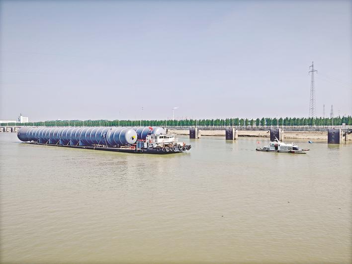 近日,装载两台“巨无霸”的船舶“兴鑫8”轮通过泰州引江河高港船闸,安全入江。