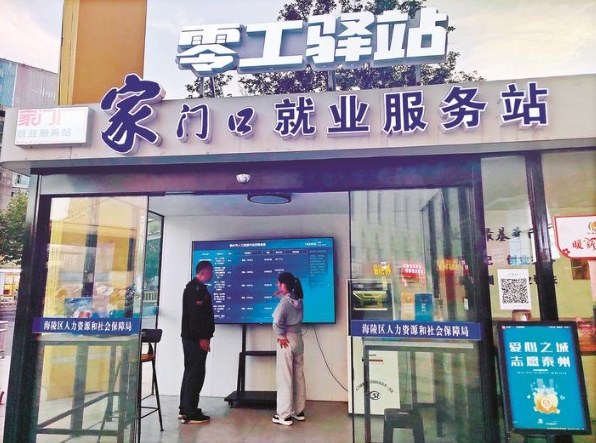 就业是最大的民生。海陵区通过就业服务端口前置、重心下沉等方式,打造“家门口”就业服务站,促进居民在“家门口”就业创业。 “政府投资项目计划今年建设3个标准化‘家门口’就业服务站,我们超额完成,建设了4个。”海陵区人社局就业人才科副科长李笠介绍,目前,海陵区已建成“家门口”就业服务站7个。服务站配置就业服务专员、人力资源服务机构、定点培训机构、社区网格员等服务力量,精准帮扶就业创业人员。 李笠表示,“家门口”就业服务站不但提供岗位应聘,还为求职者提供技能培训。“接下来,我们将联动整合多方资源,依托现有设施场所,加强社区公共就业服务平台建设,促进充分就业和人力资源优化配置,聚焦困难群体急难愁盼,让辖区居民在家门口享受到‘就在身边’的便捷就业服务。” “智能化”垃圾分类亭助力环保新时尚