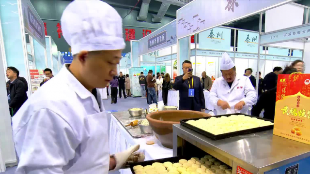 泰州作为长三角中心城市之一,也是一座“美食之都”。在这场土特产盛宴中,泰州带来了泰兴黄桥烧饼、靖江香沙芋、兴化手工鱼圆、大闸蟹等本地特色美食。在泰兴黄桥烧饼展台,现做现烤的烧饼色泽金黄,香酥可口,颇受欢迎,一上午就卖出了六大盘。 泰兴市天勇黄桥烧饼经理王伟龙说:“黄桥烧饼是我们江苏省级的非物质文化传承遗产项目。希望通过这次活动把这个烧饼带向全国,让全国的人民群众都能喜欢上我们的泰州的黄桥烧饼。”