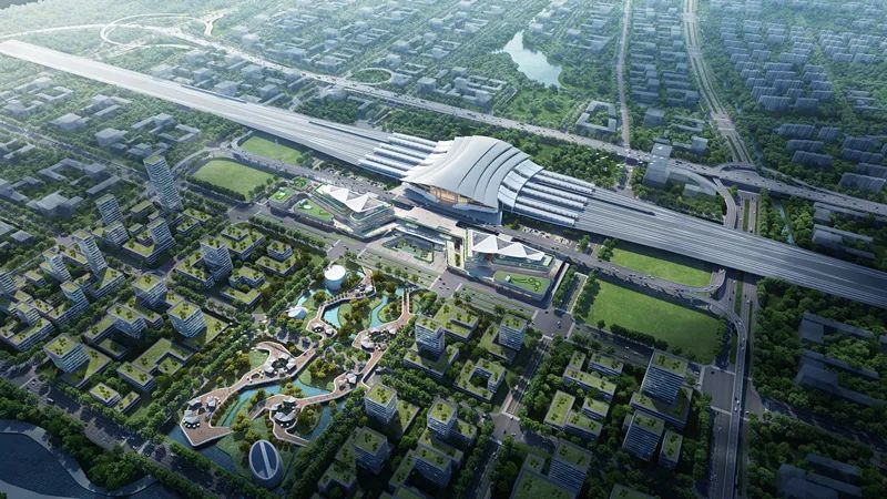 不仅如此,作为泰州地区第一个高铁综合交通枢纽,泰州市高铁南站综合交通枢纽是我市全力打造现代化“枢纽泰州”的标志性工程,也是展示泰州城市形象、凸显泰州人文魅力的新地标、新名片。该项目被列为2024年市级政府投资重点项目。 “在长三角产业一体化发展趋势下,这个项目是高铁枢纽片区‘一核、三轴、八组团’空间结构中‘一核’的核心工程之一。”项目设计总负责人介绍,该项目是交通融合、功能融合、生态融合、形象融合“站城一体化理念”的新实践,“通过悠久文化的传承、多元化交通的衔接、混合式发展的模式、阶梯度开发的设计、开放式空间的布局、创新天际步行的交汇,构建了无边界的混合生态空间。” 据介绍,泰州市高铁南站综合交通枢纽项目包含南站站房及站房同步实施工程、铁路红线外市政配套工程两部分。铁路红线外市政配套工程又分为涉铁道路工程、泰州高铁南站、综合客运枢纽、姜高路二期改造工程四个子项目。